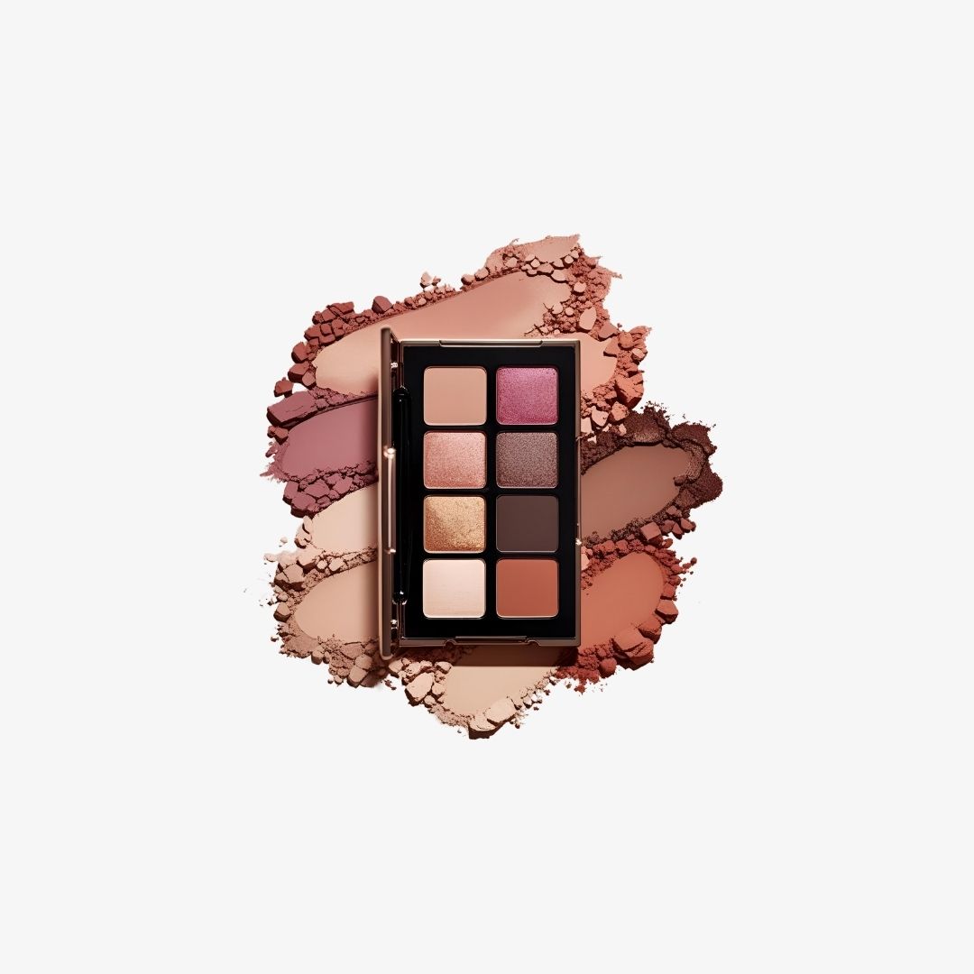 An elegant palette combining rich matte and shimmering eyeshadows with complementing blush and glow shades. Perfect for crafting romantic, soft glam looks that last from morning to midnight.